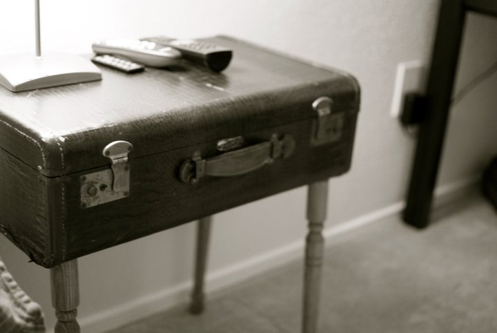 Prior to the two big games of our weekend, Ry & I headed out to Home Depot to buy some wooden legs so that our dream of creating nifty, thrifty nightstands would finally come to fruition. I had found a little suitcase for $6 outside of a thrift store in Tampa & picked it up knowing that Ry had another suitcase.